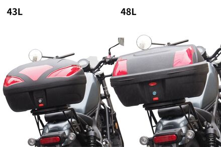 リアキャリアに装着できるボックスは、4種類のサイズからお選びいただけます。コンパクトで扱いやすいサイズから、収納力に優れた大容量サイズまでラインナップ。 普段のお買い物や通勤、通学はもちろん、ツーリングやキャンプなど荷物が増えるシーンにも対応します。